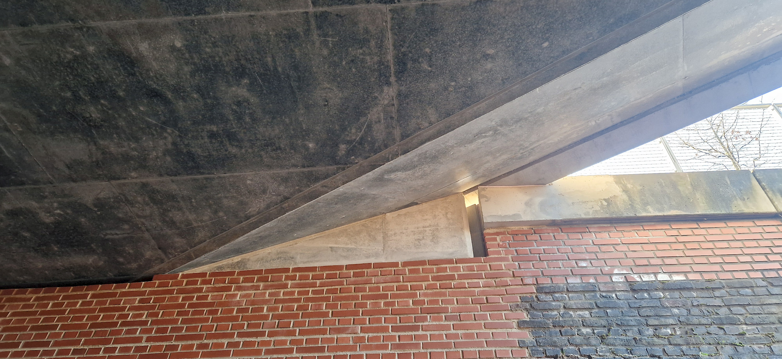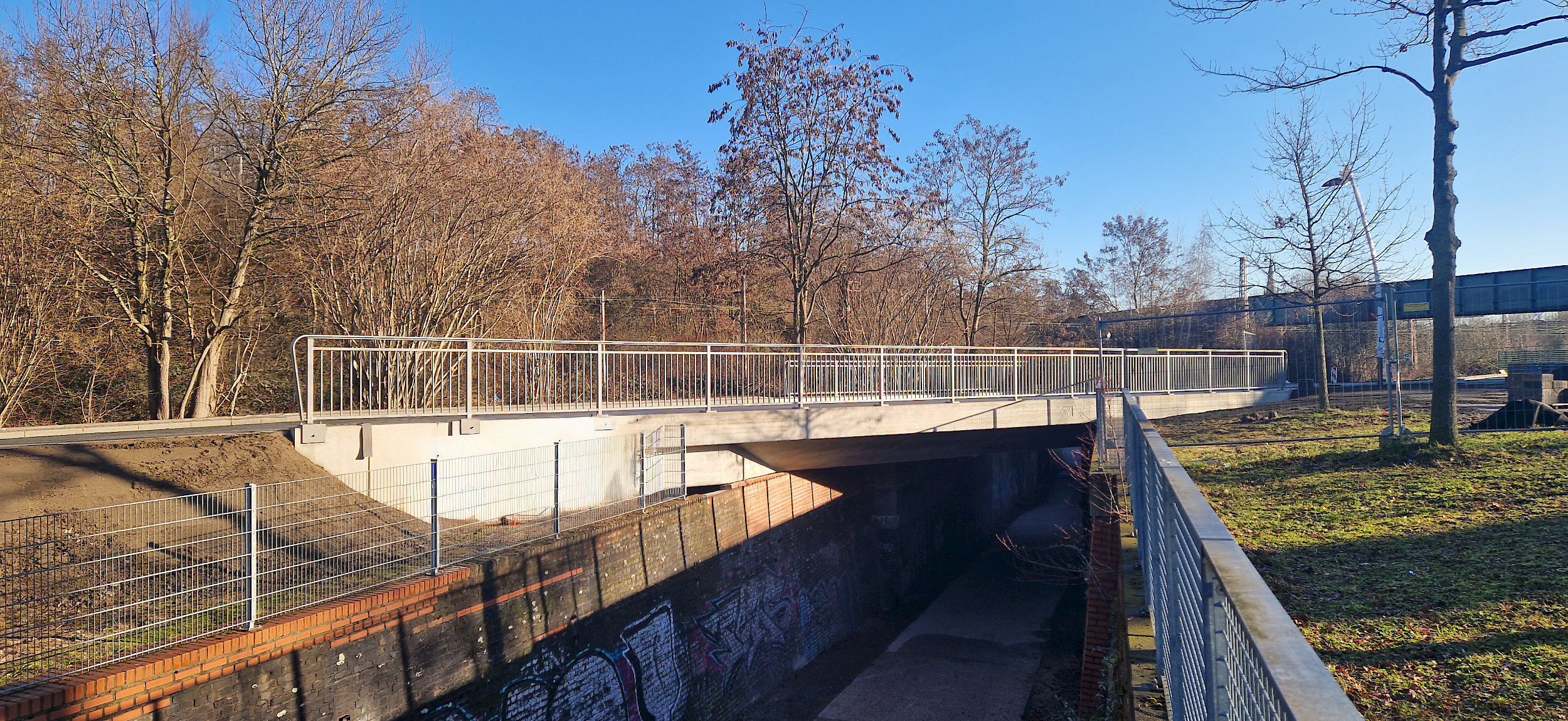 Bauwerksbeschreibung | Integrale, schiefwinkelige Stahlbeton- Strassenbrücke auf 8 Bohrpfählen unter Nutzung des Bestandes als Widerlager.